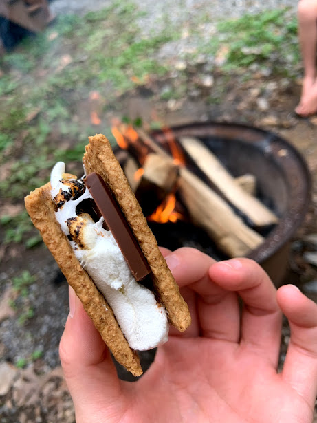 We also had our very own kitchen which was perfect for these socially distant times, and a large screened in porch (Stanley’s favorite spot to people watch). Each campsite has a fire pit which we fully utilized every night to make s’mores and grill up some food!