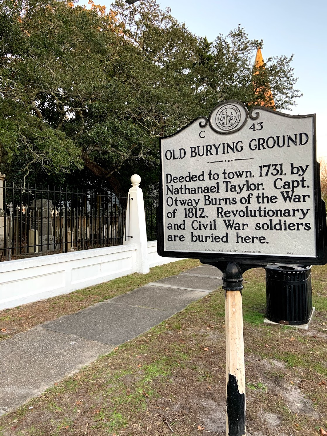 Old Burying Ground – Beaufort’s oldest cemetery is laid out among live oaks and comes with many tales. Download the app so you can take a self-guided tour. We went there at dusk, and with the setting sun and owls hooting back and forth, it was a visit to remember. Move along the sandy paths and you pass through American history. Some inhabitants of this cemetery include a child who died at sea and was buried in a keg of rum, a British naval officer buried in a standing position facing England, and the great privateer Captain Otway Burns. This is a must visit when in Beaufort.
