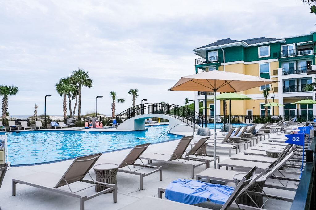 Less than a mile away you can find The Westin’s sister hotel, The Courtyard Jekyll Island. The Courtyard is the newest hotel on Jekyll Island and everything is top notch . They boast the largest pool on the island, and our kids had way too much fun playing here. The Courtyard is also oceanfront and is incredibly family friendly.