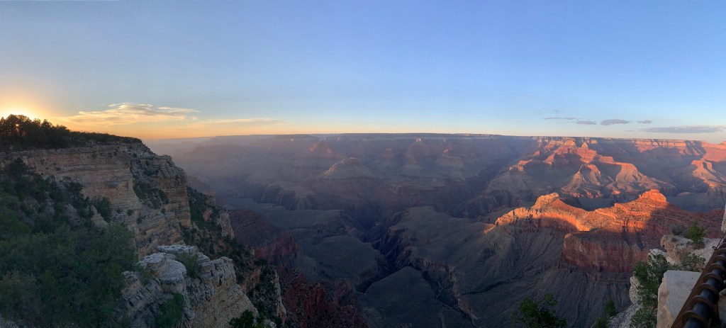 Grand Canyon Sunset – As I mentioned earlier, a sunset or sunrise while visiting is always a fun idea. We went for sunset to the rim trail at Mather Point. This is just behind the visitor’s center and the most popular viewpoint. It is completely railed, providing peace of mind with the kiddos. We watched sunset here and it was beautiful to watch the colors and shadows transform over the canyon.