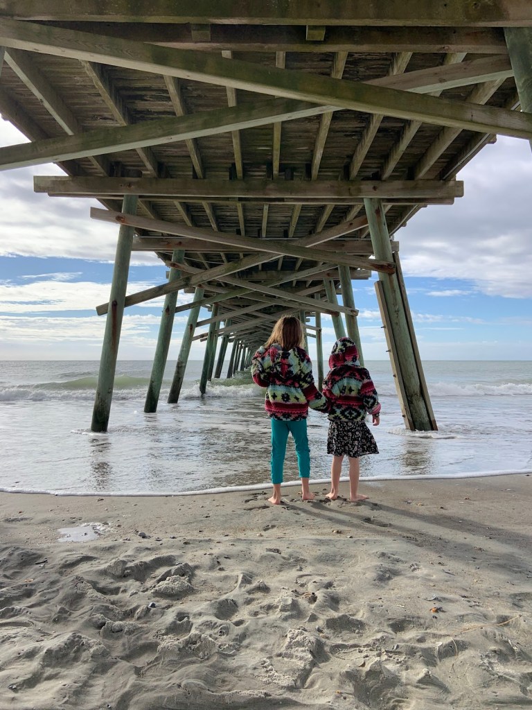 Bogue Inlet Pier – We always make a stop at the Bogue Inlet, a historic wooden pier popular for fishing & spending a casual morning or afternoon watching others fish! We spotted a giant leatherback turtle off this pier one summer and it was awe-inspiring. On this particular trip we watched the dolphins play for several minutes, such a special treat! There is a seafood grill located here and a beautiful beach to relax or have the kiddos play. Bring a jacket if visiting in the cooler months, it can get windy on the pier.
