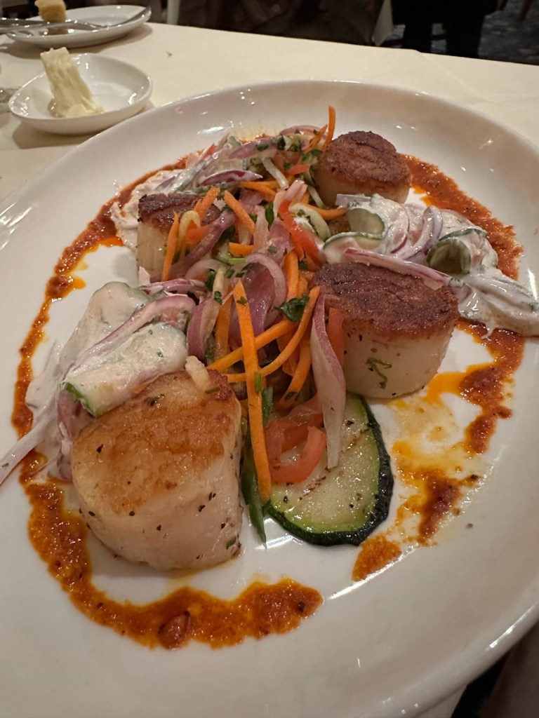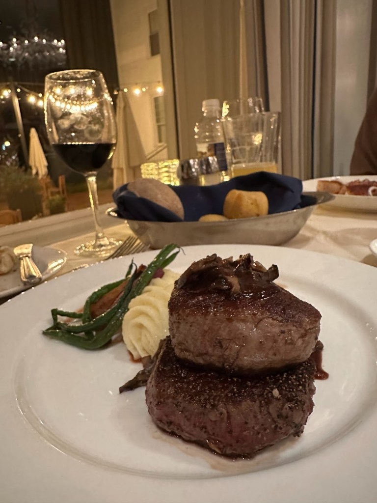 Now let’s chat about dinner. If you chose the meal plan option with your stay Pinehurst Resort (which I highly recommend), you get the breakfast buffet and a three course meal for dinner included. So when we sat down and were presented with the options – my eyes got wide and my stomach was rumbling. We ate here two nights and I can confidently say that you cannot go wrong with anything on this menu. I highly recommend the Oysters Pinehurst and shrimp & grits for an appetizer. For you entree, the Steak Diane and Sea Scallops were out of this world. And the Mile-High Key Lime Pie is worth it alone for the wow factor. I am not a key lime pie fan and I LOVED it! Okay okay… did I mention I want to go back?