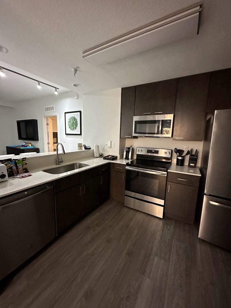 After check-in, head to your two or three-bedroom suite with separate living and dining area, full sized washer and dryer, and fully equipped kitchen. Each suite has modern decor and is immaculately cleaned. The rooms and bathroom are spacious in size, perfect for a family with a lot of cargo! If you think that sounds good… the accommodations are the tip of the iceberg at The Grove!