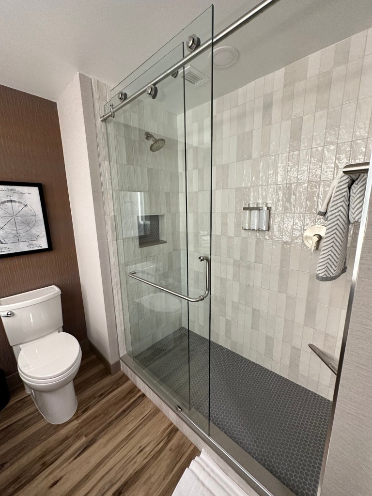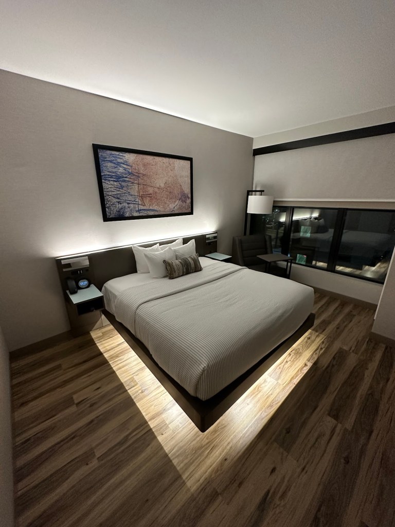 We stayed in a spacious king suite with views of the city. Our room had an ultra-comfortable king bed with a separate living room, refrigerator and large bathroom with walk-in shower. Our suite had an adjoining room with two queen beds, making it the perfect setup for a family!