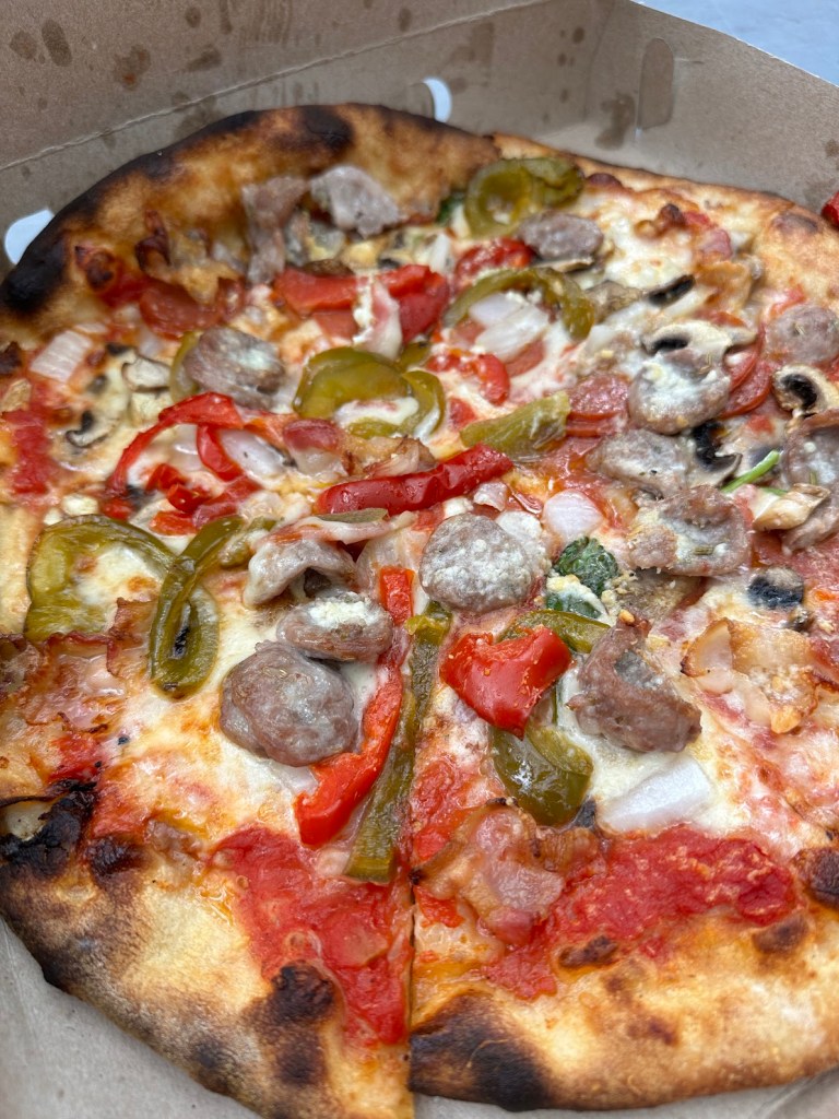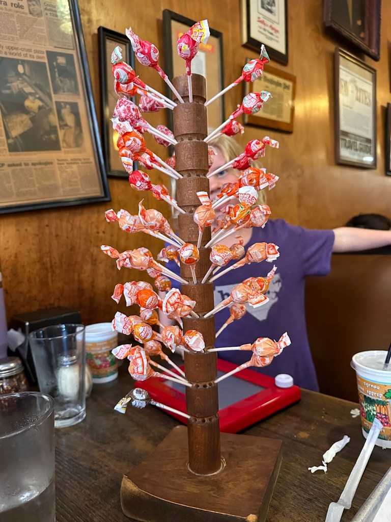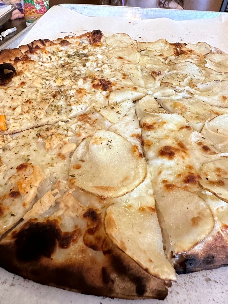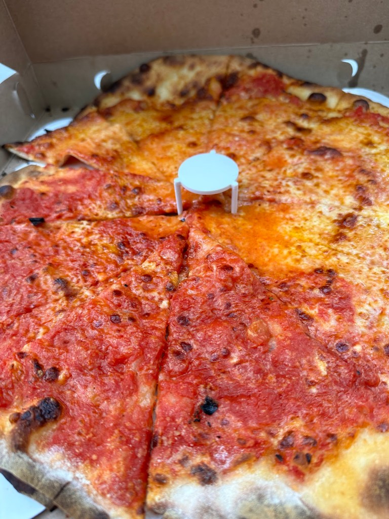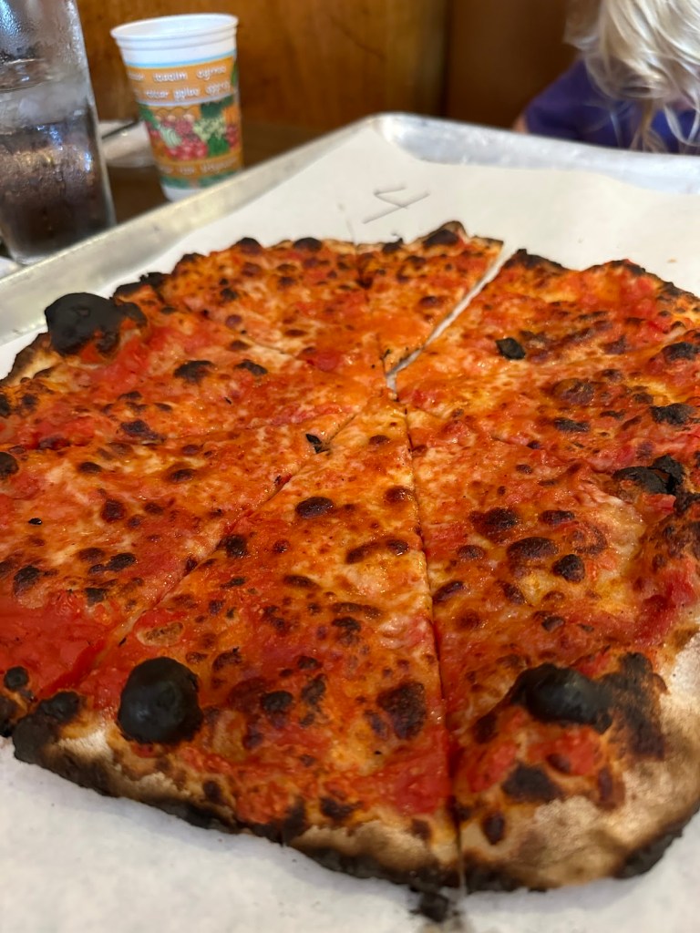 Sally’s Apizza – Just down the road from Pepe’s you can find Sally’s! Again, there will be a line out the door. From what I heard, getting take out from Sally’s is not as quick, so we decided to get there at 11AM to get in line (they open at 11:30). My husband stood in line and I took the kiddos to the park. We were sat in the first wave, and were super impressed with the customer service and kindness the staff showed our kids (they were brought etch-a-sketches and a lolly pop tree). This time we tried half clam and half potato (unique but what they are known for!). The pizza at Sally’s was also delicious, but hard to compare since the types of pizza we got were so different.